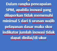 Desk SPM Inovasi juga berfungsi sebagai ajang pendampingan teknis dalam aspek penginputan data dan penyempurnaan regulasi inovasi agar inovasi yang dihasilkan dapat diakui secara nasional, termasuk dalam ajang penghargaan seperti SPM Awards, serta memberikan manfaat nyata bagi masyarakat, khususnya kelompok rentan.